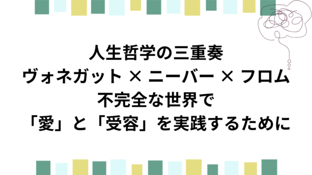 ライフスタイル 人生哲学の三重奏:ヴォネガット × ニーバー × フロム:不完全な世界で「愛」と「受容」を実践するために 2025年10月14日 hideaki@2778 もうすぐ40歳のおっさんブログ