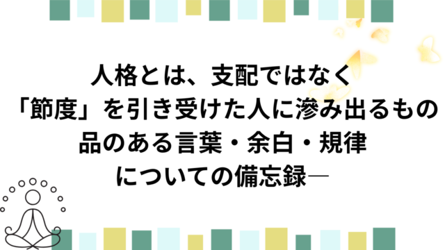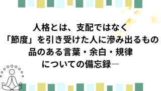 人格とは、支配ではなく「節度」を引き受けた人に滲み出るもの―品のある言葉・余白・規律についての備忘録―