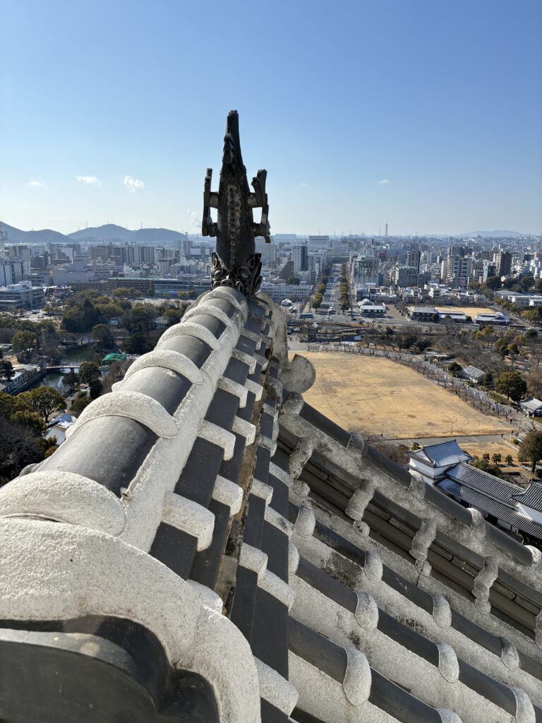 雪もすっかりと溶けて晴天となった天守閣からの屋根瓦と城下町の景色は、どこか凛とした空気をまとっていました。