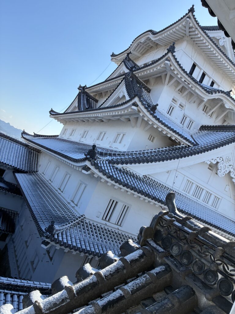 白壁にうっすらと積もる雪は、まさに白鷺城の名にふさわしい姿でした。