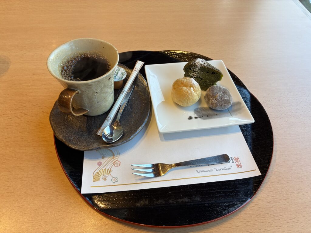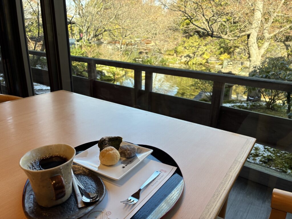 今回はお茶菓子をいただき、庭を眺めながら贅沢なひとときを過ごしました。