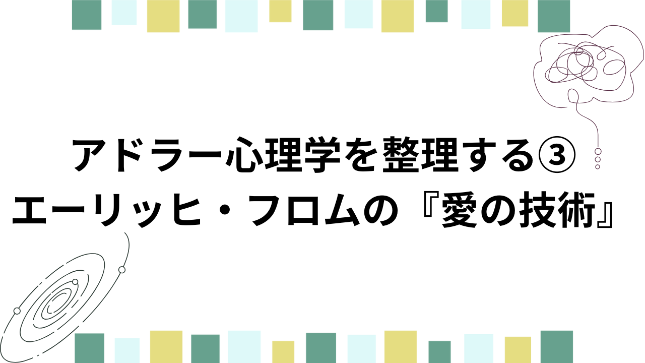 フロムの中にアドラーの考えが深く隠されているような印象。もう少し深掘りしてみてもいいかもしれません。