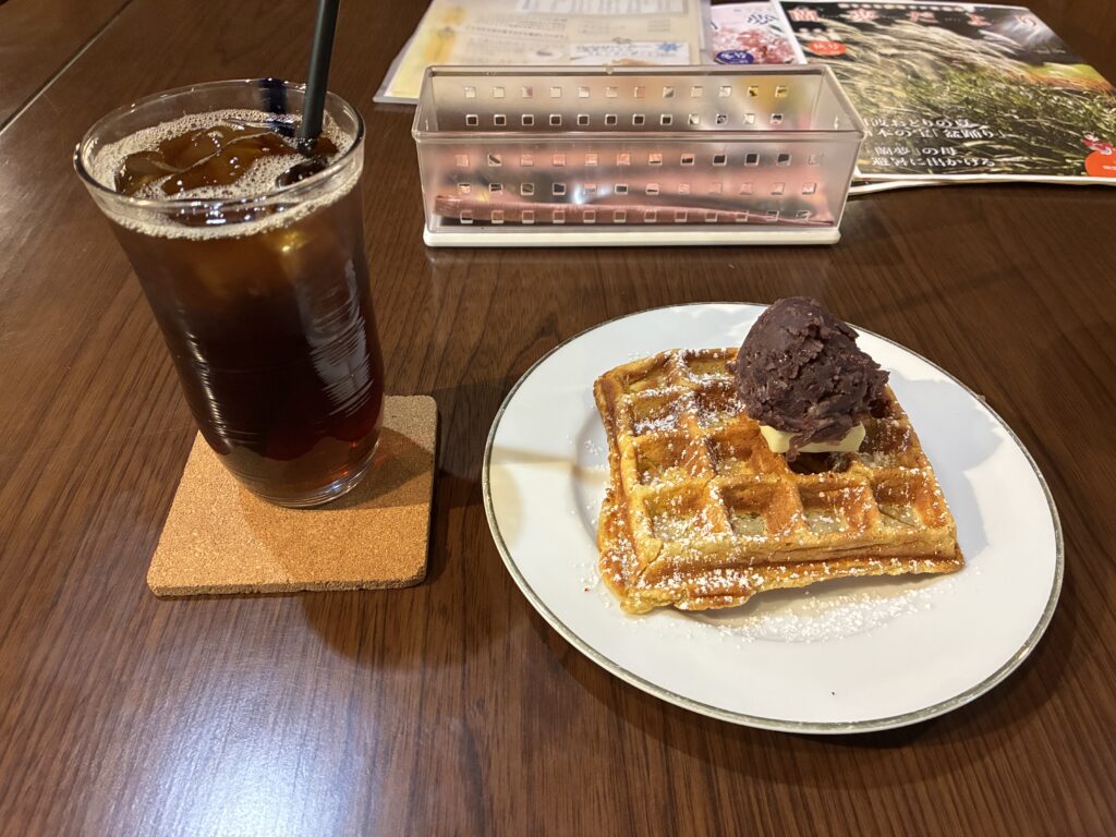 あんバターのワッフルとアイスコーヒーを注文。