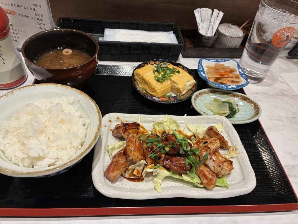 焼き鳥定食はシンプルながら満足度が高く、地元の味を気軽に楽しめます。