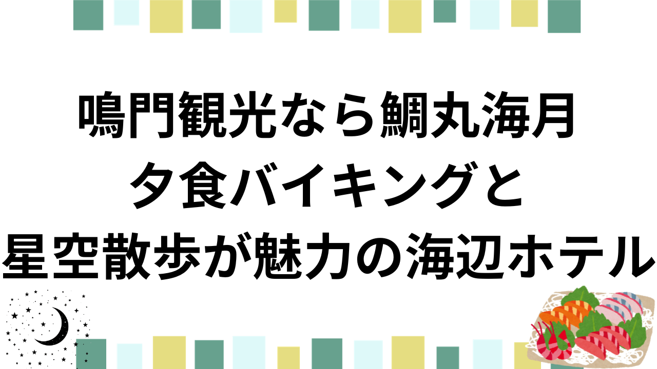 この記事では、実際に宿泊して感じた魅力や夕食バイキングの内容、そして鳴門ならではの楽しみ方について詳しくご紹介します。