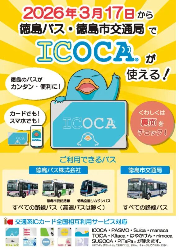 徳島バスは2026年3月17日からICカード対応予定となっています。