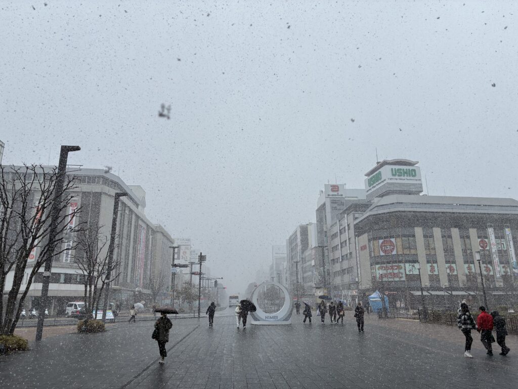 荷物を預けている間に雪が弱まったため、アーケードのある姫路駅前の御幸(みゆき)通りへ向かいました。