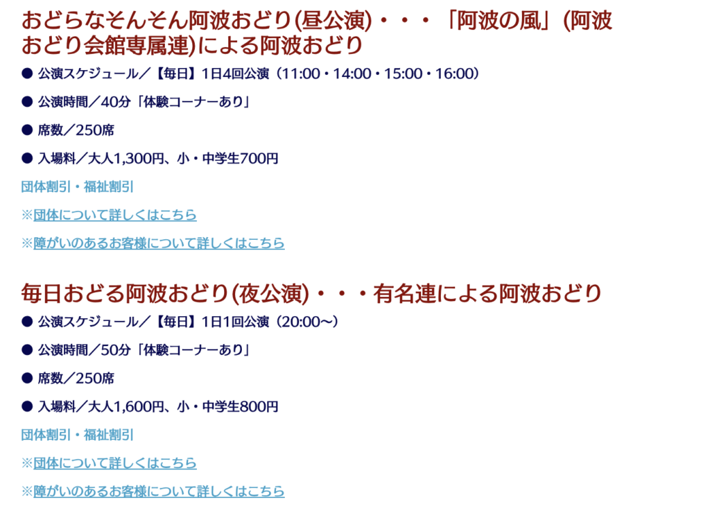 阿波おどり会館の公式サイトhttps://www.awaodori-kaikan.jp/