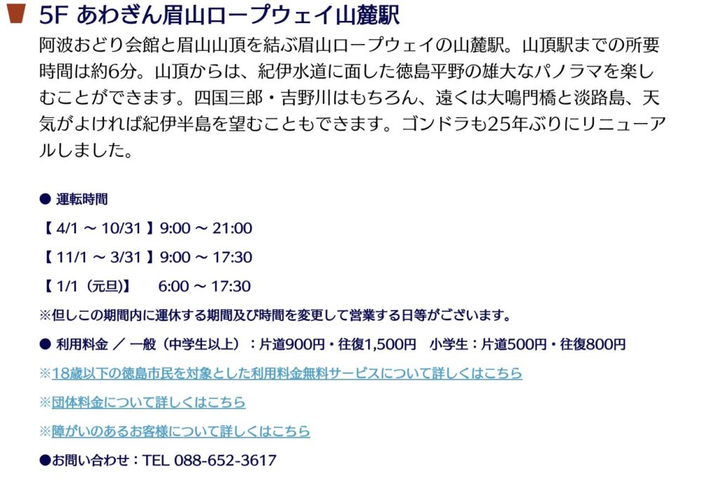 あわぎん眉山ロープウェイ山麓駅の公式サイトhttps://www.awaodori-kaikan.jp/